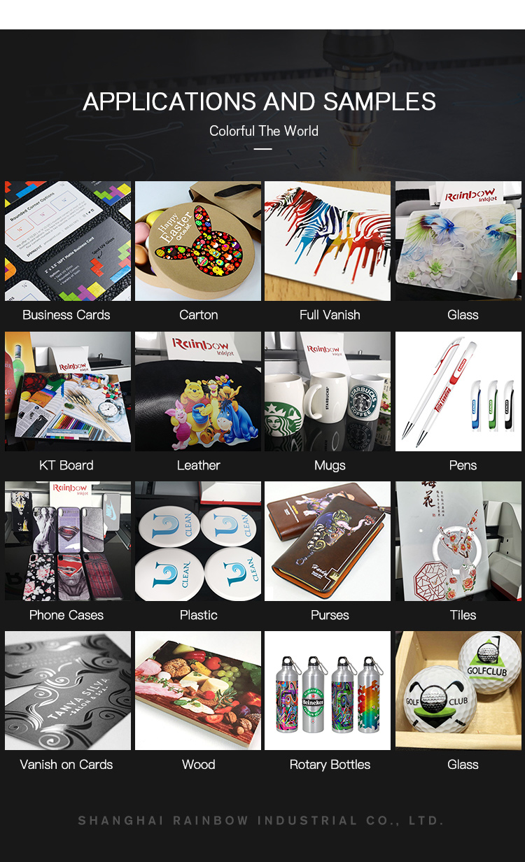 The printer can print on a wide range of materials including metal, plastic, glass, wood, acrylic, ceramics, PVC, steel board, paper, TPU, leather, and canvas.