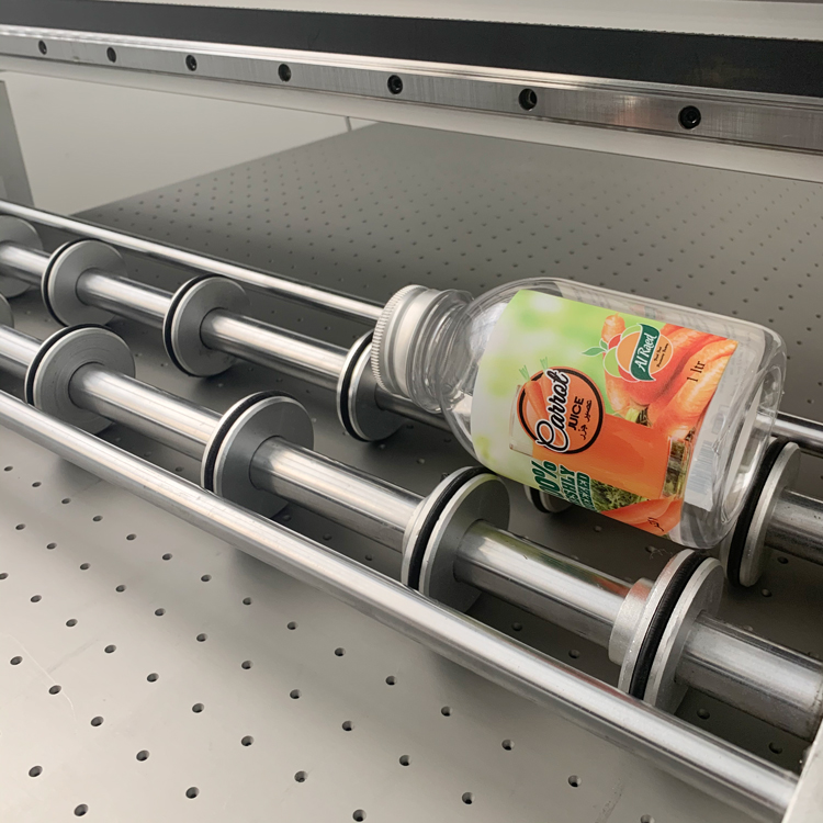Yes, the Rainbow Nano 9 is equipped with two rotary devices that allow printing on cylindrical objects such as bottles and mugs with handles.
