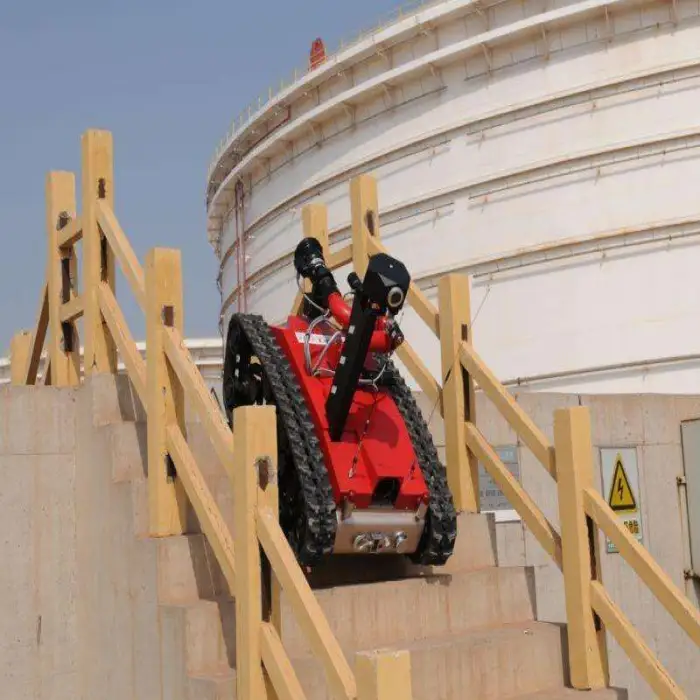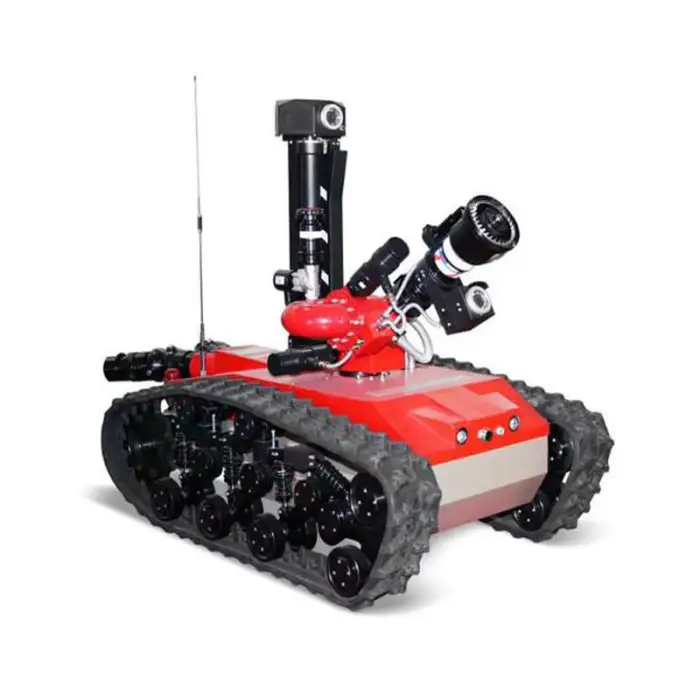 The robot is designed for remote control operation, allowing users to maneuver it effectively in hazardous situations.