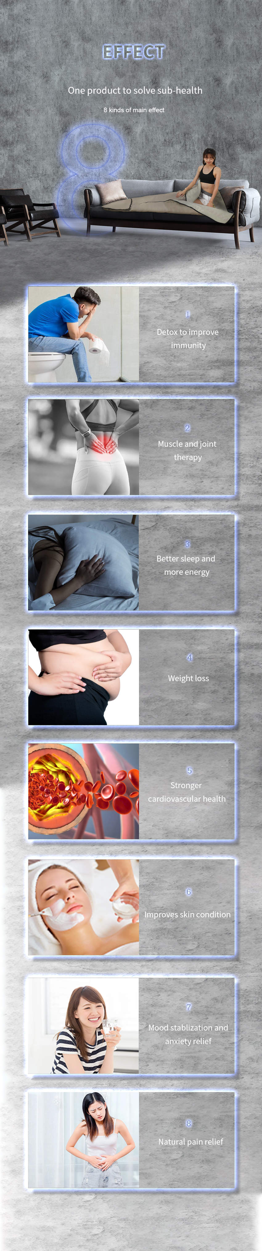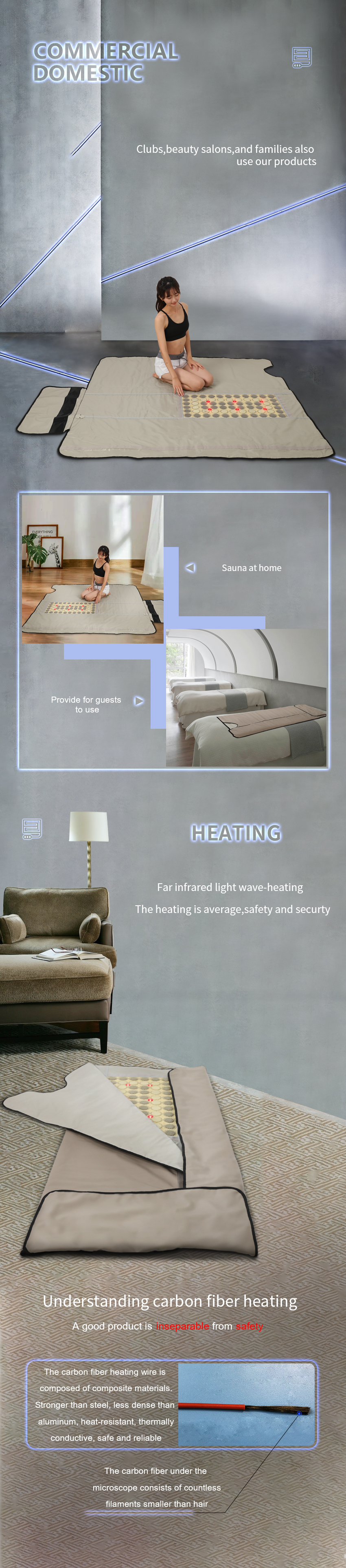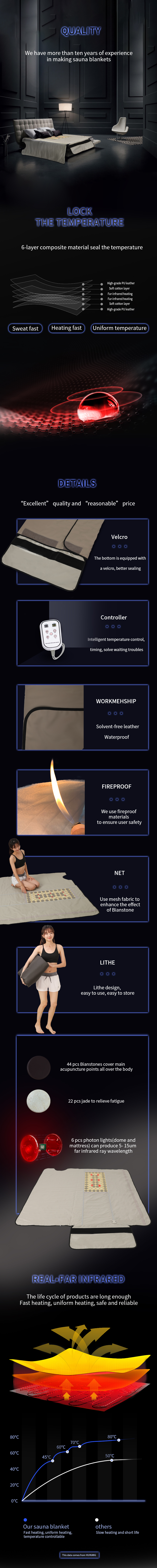 The Spa Detox Wrap is a far infrared sauna blanket that uses carbon fiber heating elements to emit far infrared heat. This heat penetrates deep into the skin, stimulating blood circulation, promoting sweating, and supporting the body's natural detoxification process.