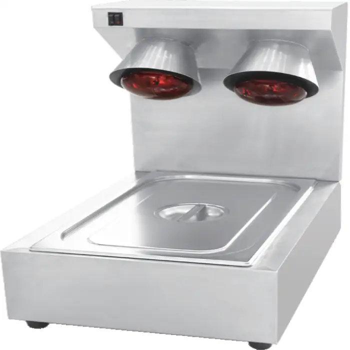 Most units are plug-and-play for tabletop or counter use—simply position over the serving area and plug into a 220V outlet. If the model includes mounting hardware, follow the supplied instructions. Contact the seller for model-specific assembly guidance.