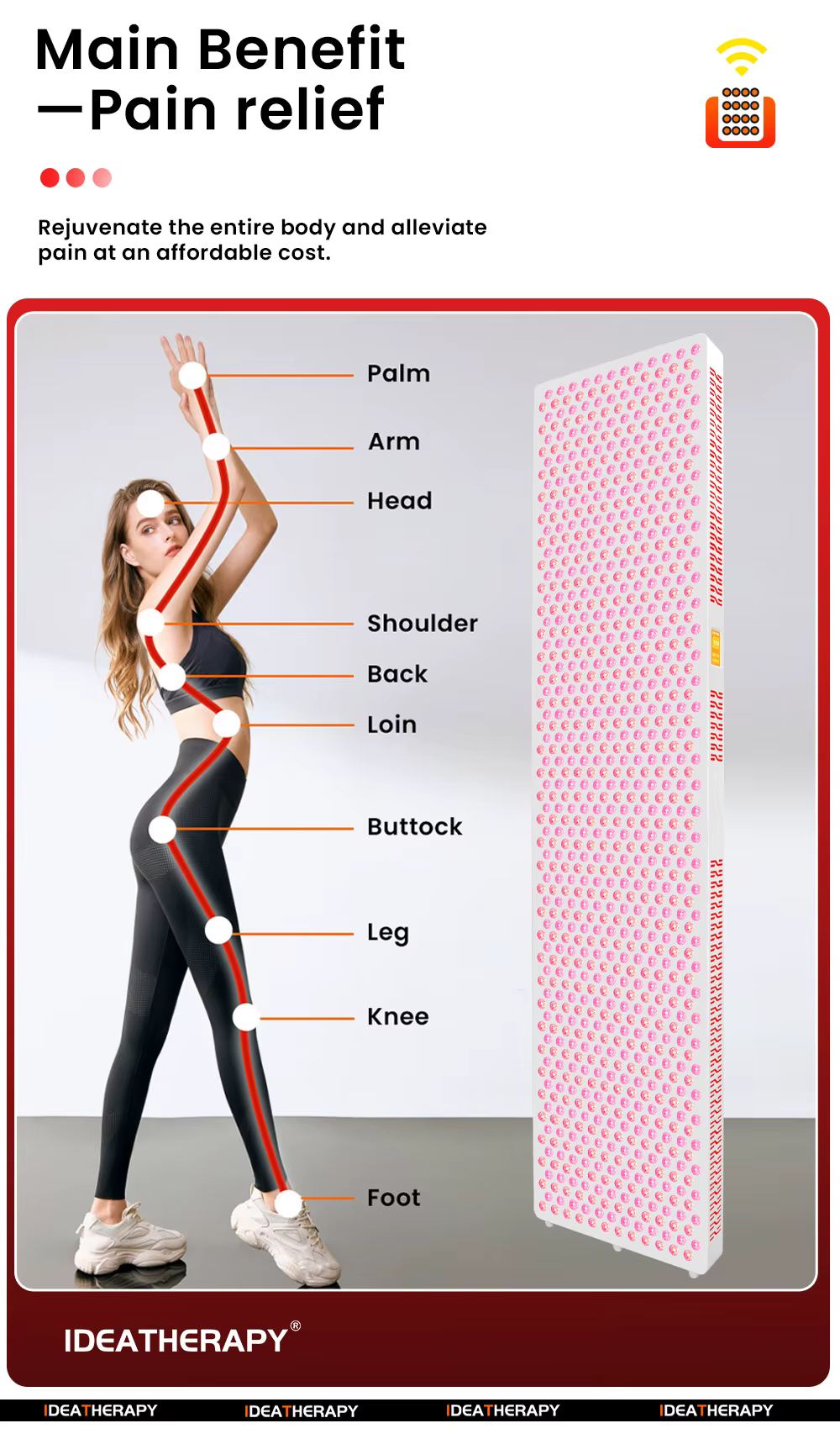 The RLPRO1200 is designed to relieve muscle and joint pain, enhance skin health, support recovery from injuries, improve circulation, promote relaxation, and boost overall wellness.