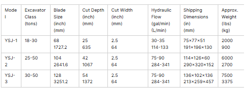 This machine is compatible with excavators ranging from 2-4 tons, 6-9 tons, 12-18 tons, 20-27 tons, to 30-40 tons.