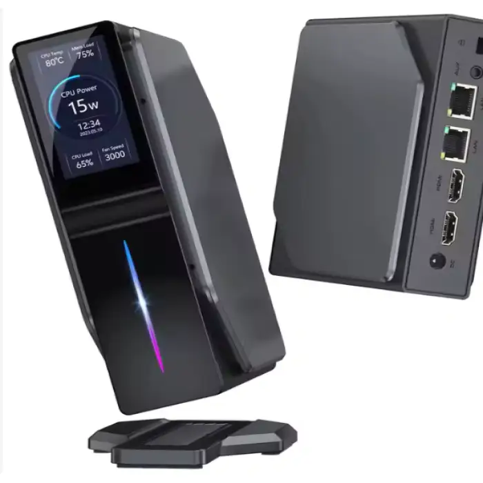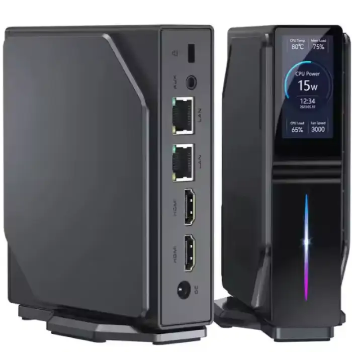 The S1 RGB Gaming Mini PC features a 1.9" TFT LCD screen with a resolution of 170x320, providing useful information at a glance.