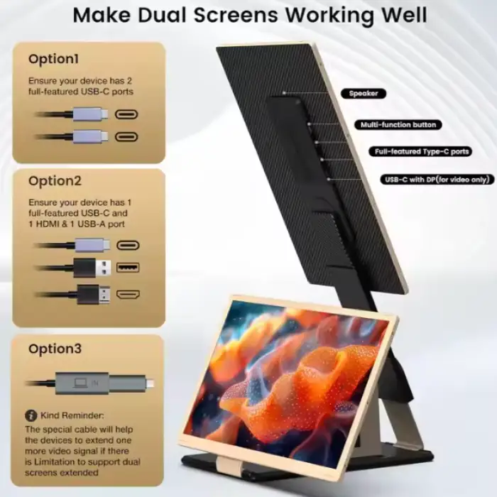 The S6 Portable Double Monitor features a screen size of 15.6 inches.