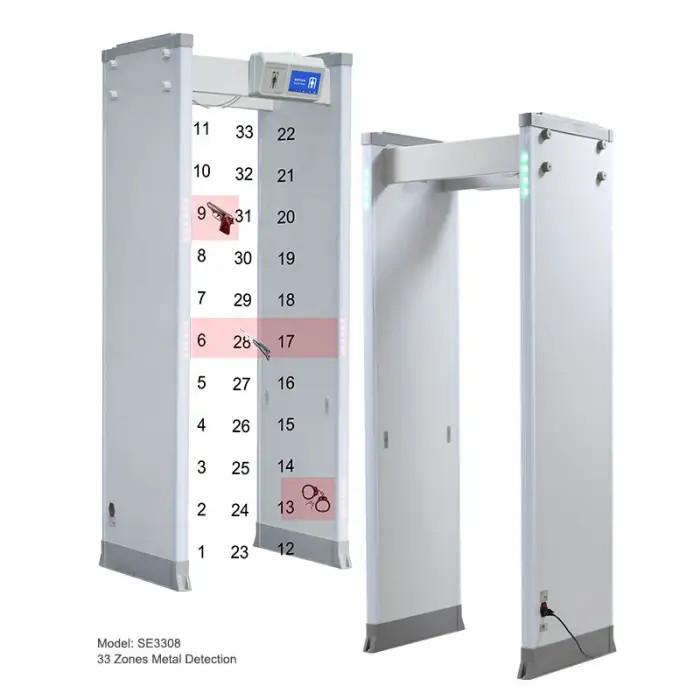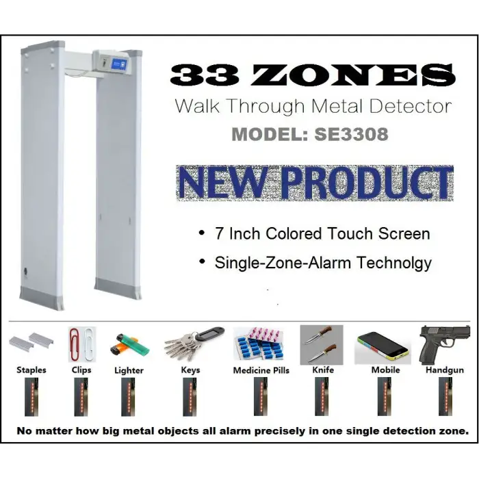 The scanner utilizes advanced scanning technology with 33 zones to quickly and accurately detect metal objects.