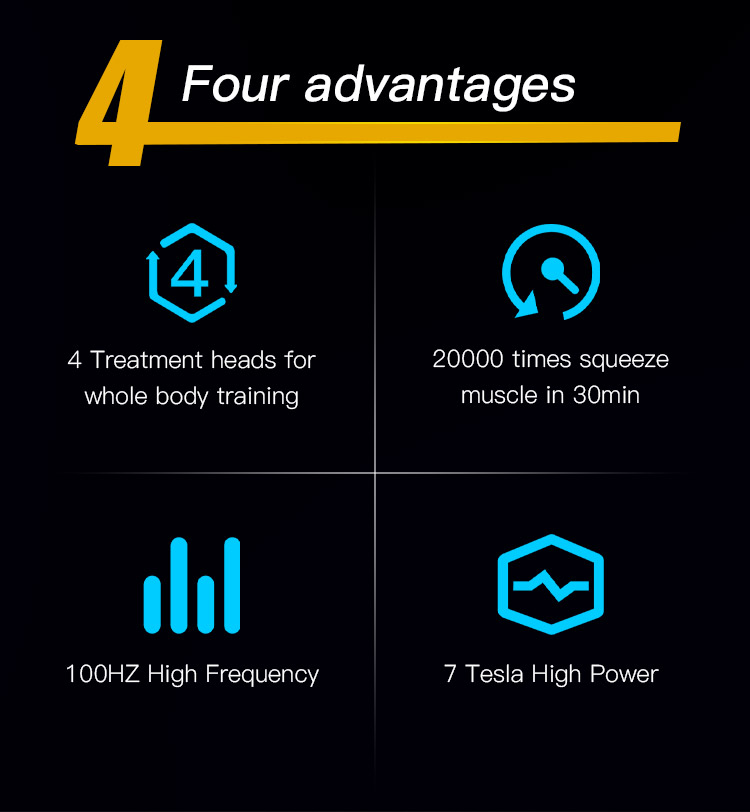 The device emits controlled magnetic wave energy to induce supra‑maximal muscle contractions and increase local metabolic activity. The combination of muscle stimulation and localized energy delivery supports muscle toning and adipose remodeling when used in a treatment protocol.