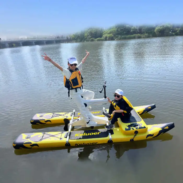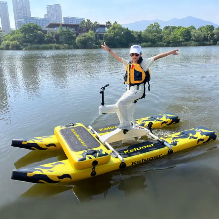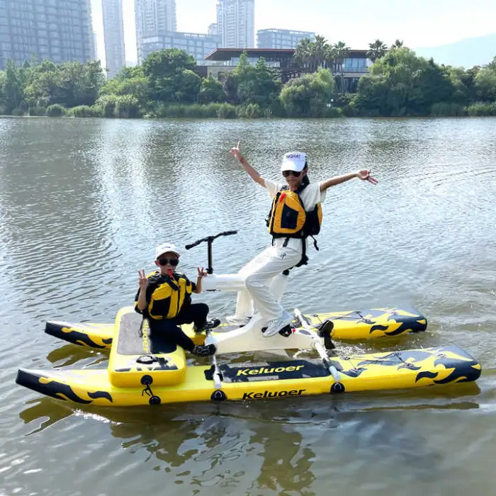 The bike is made from a durable 6061 aluminum alloy, while the boat is constructed from waterproof and flame-retardant 1200D 0.9mm PVC Tar.