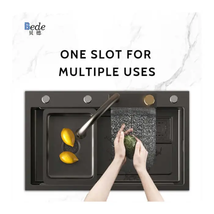 The sink has a polished/nano surface treatment for an elegant finish.