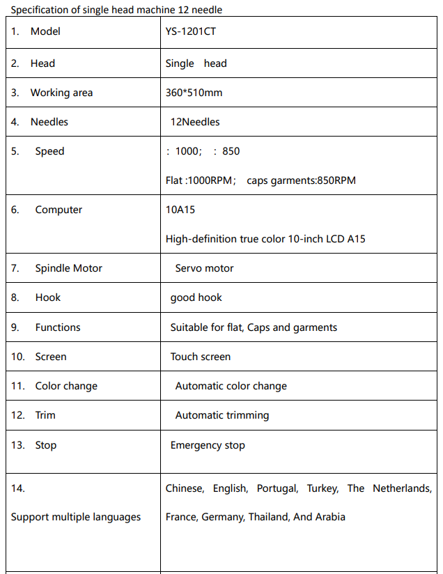 The Yeshai Single Head 12 Needle Embroidery Machine can reach a maximum embroidery speed of up to 1000 stitches per minute, allowing for efficient and quick production.