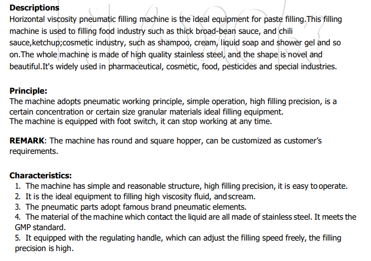 The QDG-1000 filling machine is designed for filling various types of paste, including food products such as jam and meat sauce.