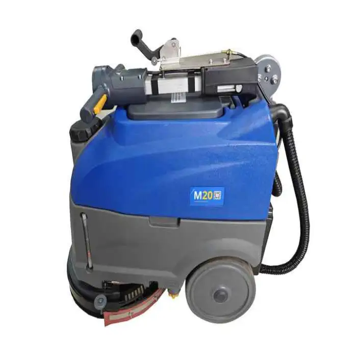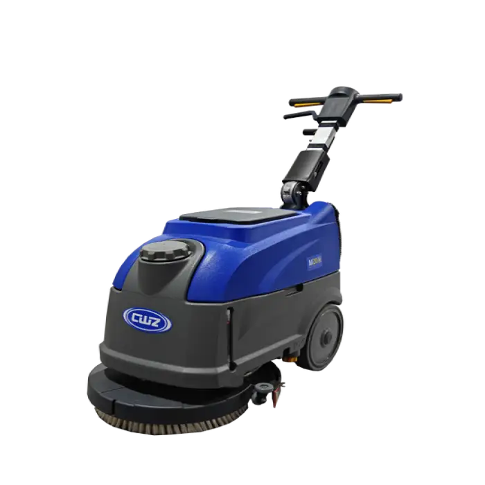 The Small Electric Hand Push Floor Scrubber Dryer uses a Clean-In-Place (CIP) cleaning process, which is effective for various commercial applications.