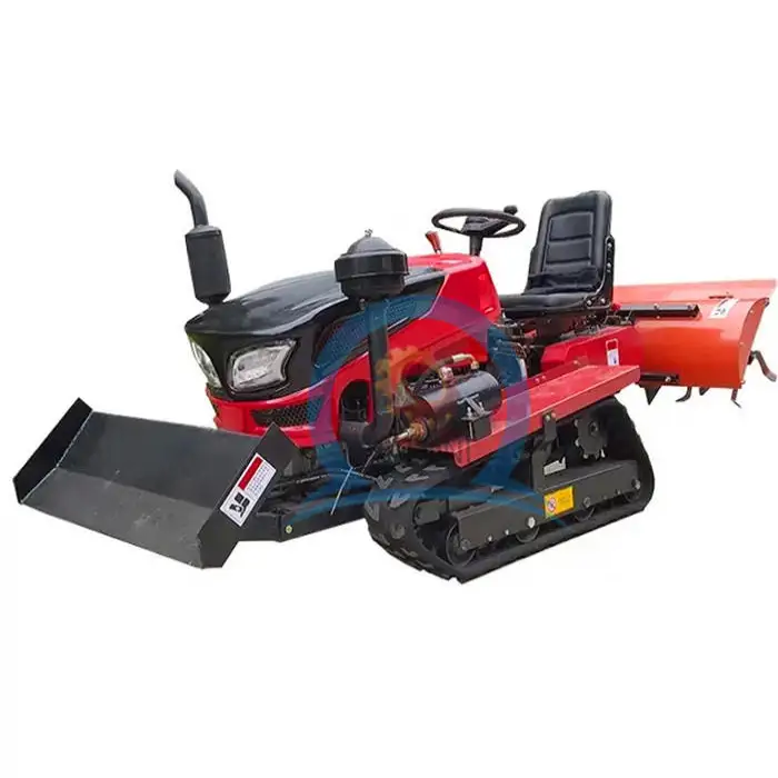 It can be used for tilling soil, weeding, backfilling, preparing land, and moving materials as a bulldozer.