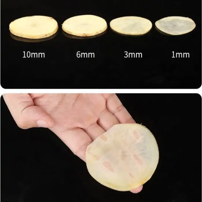 The slicer is made from durable SUS304 stainless steel, ensuring long-lasting performance and resistance to rust.