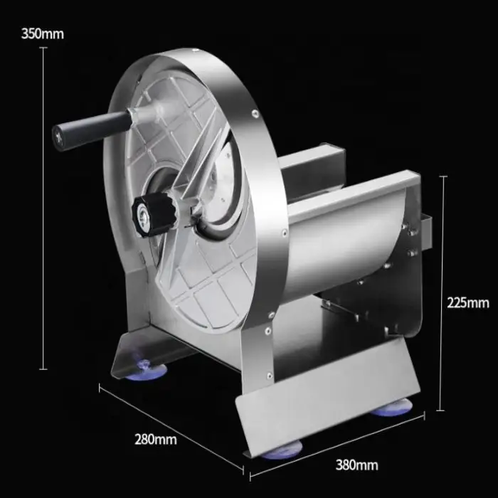 The Small Semi-Automatic Onion Slicer Cutter is designed to efficiently slice a variety of vegetables and fruits, including onions, potatoes, carrots, and other similar produce.
