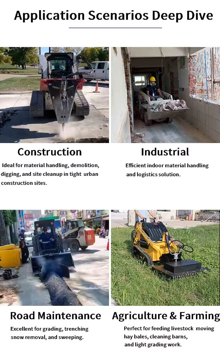 This loader is ideal for construction sites for digging and lifting, landscaping and gardening tasks, snow removal in winter, cleaning and maintenance of outdoor areas, and loading and unloading materials.