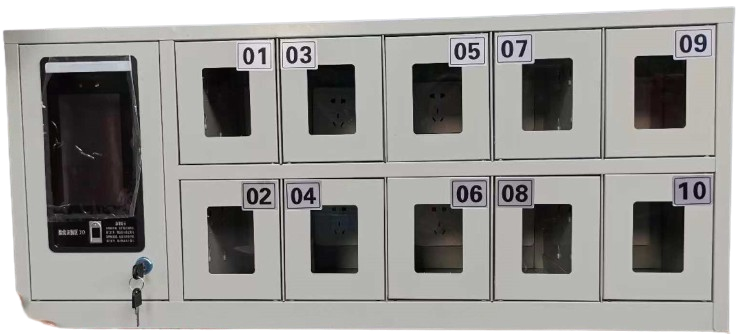 The charging function operates via a standard electrical outlet, and the cabinet is equipped with necessary ports for charging.
