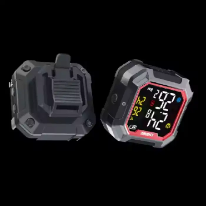 The system features a dual display, providing clear visibility of tire pressure readings.