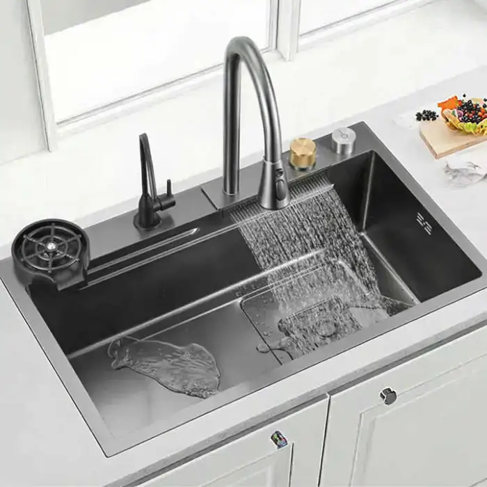 The sink has a nano coating millet surface treatment, providing added durability and ease of cleaning.