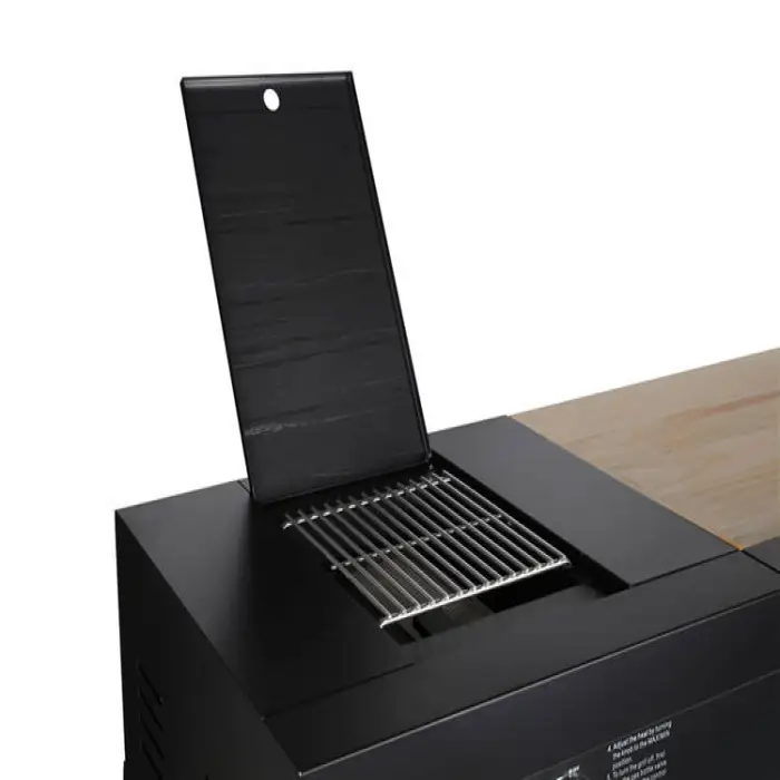 The sink cabinet features a powder-coated finish, which provides added protection against the elements and enhances durability.