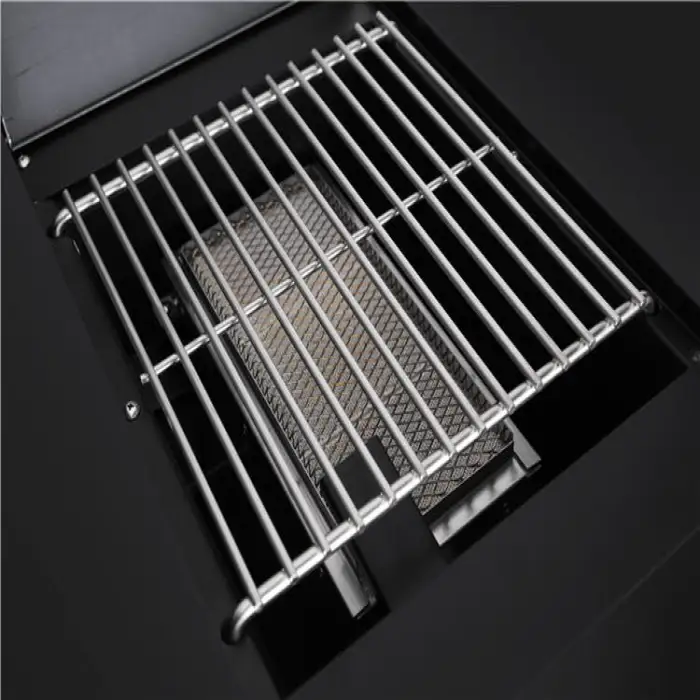 Yes, the stainless steel construction and powder-coated finish provide durability and protection against harsh weather conditions.