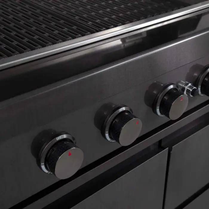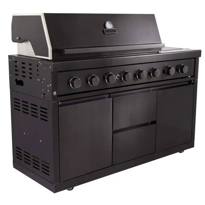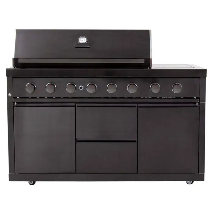The BBQ grill island is available in a sleek black color, adding a modern touch to your outdoor space.