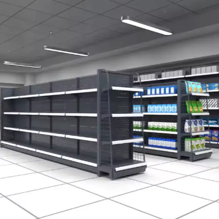 The shelves feature an elegant black finish that enhances the aesthetics of any store environment.