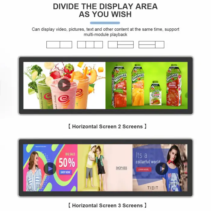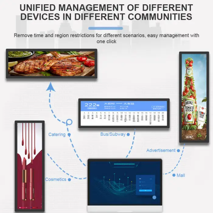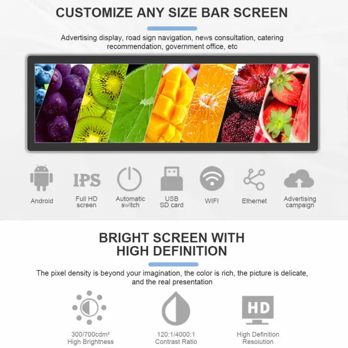 The Strip Screen Advertising Video Picture Display is compatible with Windows and Android operating systems.