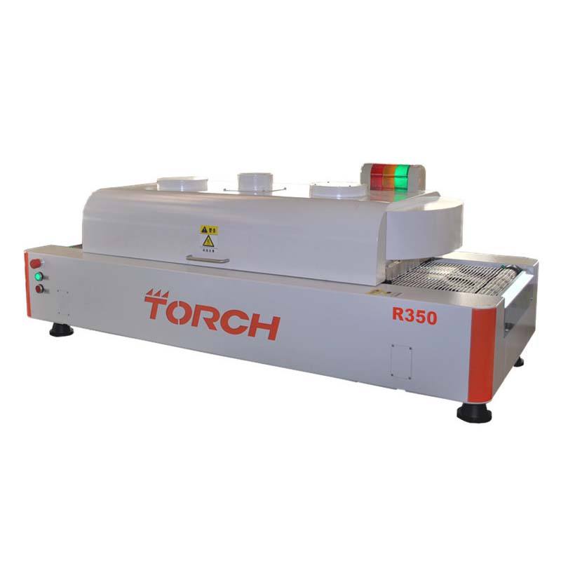 The Torch Middle Size Desktop 6 Temperature Zone Lead Free Online Mini Size Reflow Oven R350 is an advanced solution for soldering printed circuit boards (PCBs) with precision and efficiency. This compact oven is designed to provide excellent temperature control and uniform heating, making it ideal for both professional and hobbyist use. With its user-friendly features and robust performance, the R350 ensures high-quality results in your soldering projects.