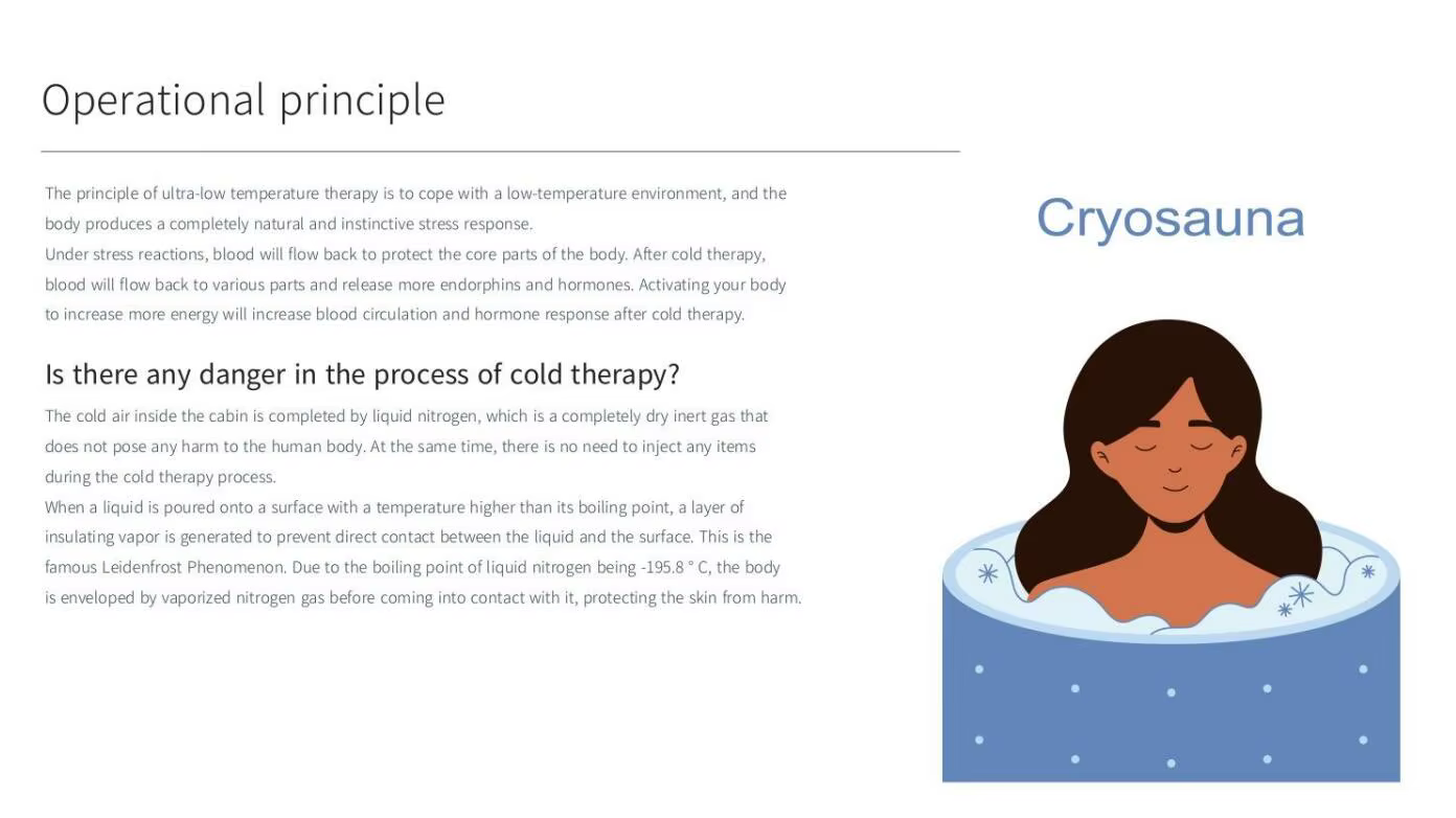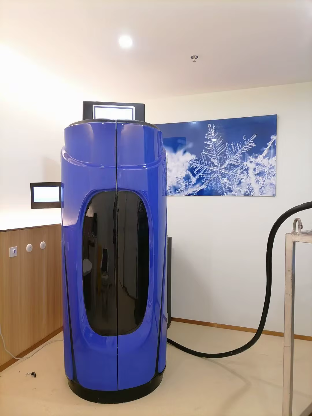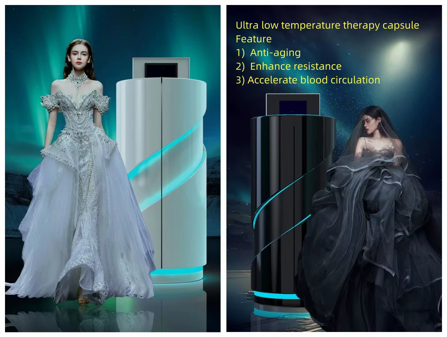 The Ultra-Low Temperature Whole Body Cryotherapy Chamber, also known as the Cryosauna Machine, is a therapy cabin designed for anti-aging and skin whitening treatments using low-temperature cryotherapy combined with infrared technology.