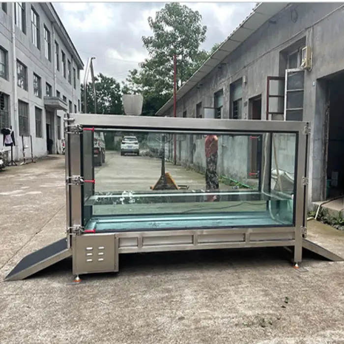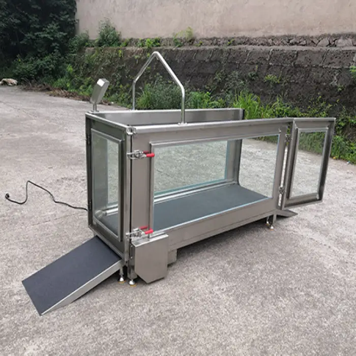 The underwater treadmill provides low-impact exercise, helping overweight dogs lose weight effectively while minimizing stress on their joints.