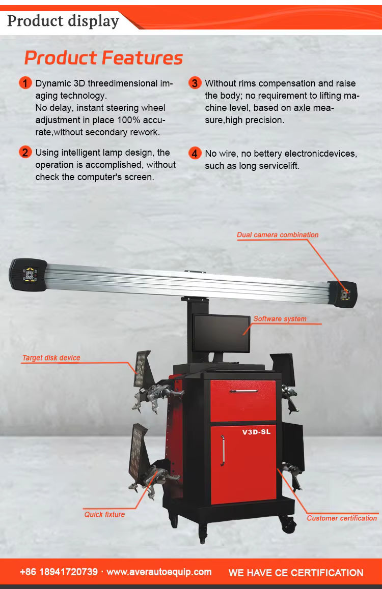 The V3D-SL is ideal for 4S shops, vehicle service stations, garages, and tyre shops that require wheel alignment and balancing services.