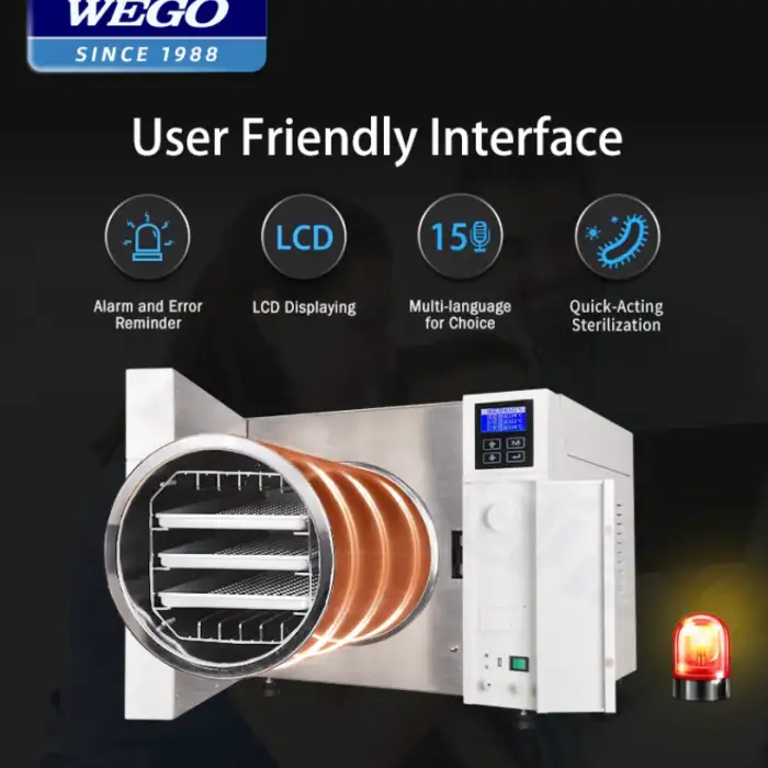The WEGO Dental Autoclave MST.B(23L) provides efficient sterilization in just 10 minutes.