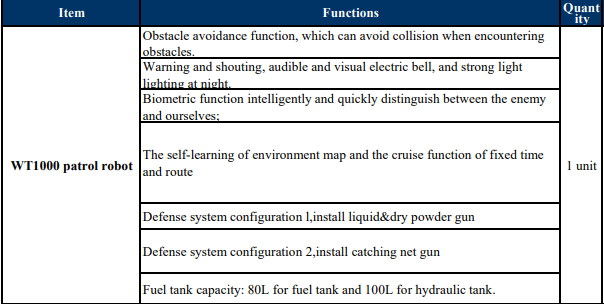 The WT1000 Patrol Robot has a maximum operational range of up to 500 meters, depending on the environment and obstacles.