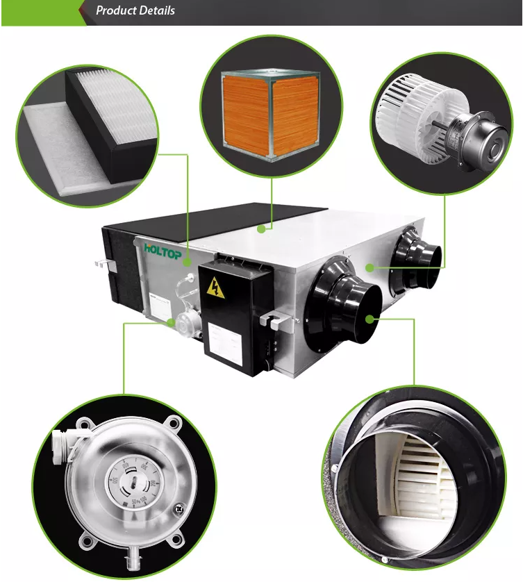 ERV systems exchange energy contained in exhausted air with incoming outdoor air, cooling and dehumidifying in summer while humidifying and pre-heating in winter, thus enhancing energy efficiency and indoor air quality.
