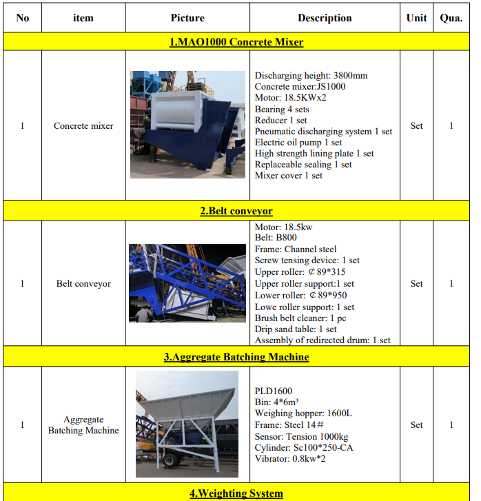 The Mobile Concrete Batching Plant weighs approximately 10,000 kg.