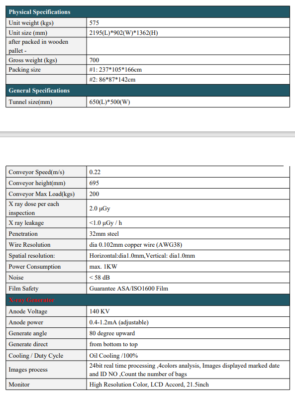 The tunnel size of the ZA6550 X-ray Parcel Scanner is 500mm (Width) x 300mm (Height).