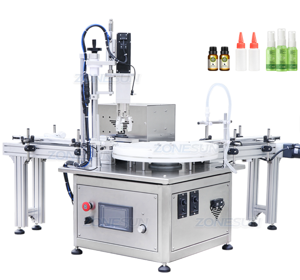 The ZONESUN Automatic Peristaltic Pump Desktop Monoblock Perfume Liquid Vial Roll-on Bottle Filling Capping Machine is a powerful and efficient solution for filling and capping roll-on bottles. This machine is designed to streamline your production process with its high-speed capabilities and user-friendly features. It is perfect for businesses that need to fill and cap a large number of bottles quickly and accurately.