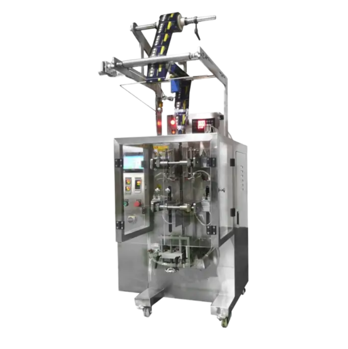 A specialized sachet machine for viscous foods like sauces and pastes. This highly capable machine is designed to pack thicker liquids and pastes – such as honey, jam, ketchup, mayonnaise, peanut butter, chocolate syrup, etc. – which require more robust filling systems. It features an automatic feeding and filling system with a large hopper (for paste products) and can also handle liquids and even some granules/powders with appropriate attachments
