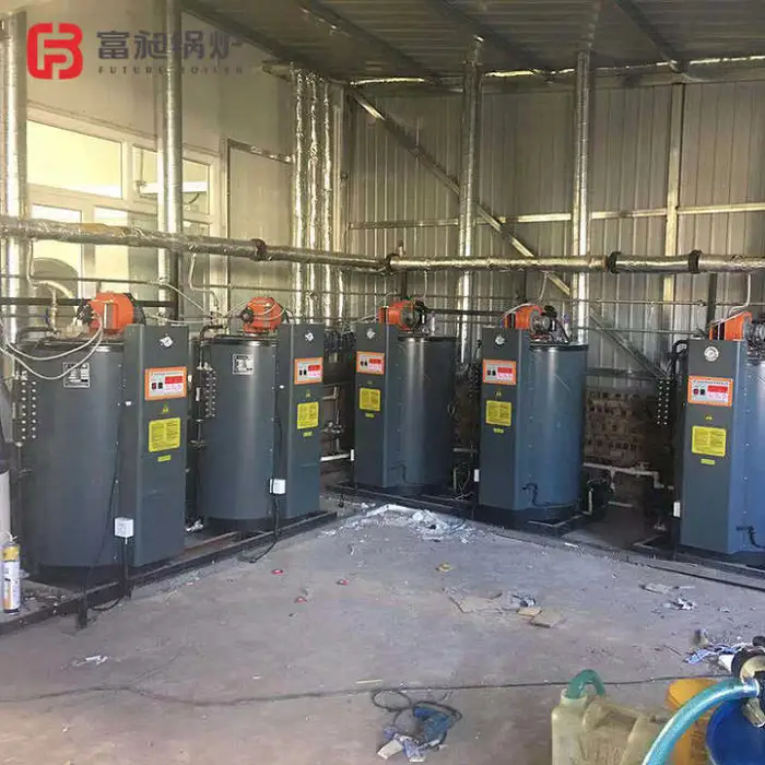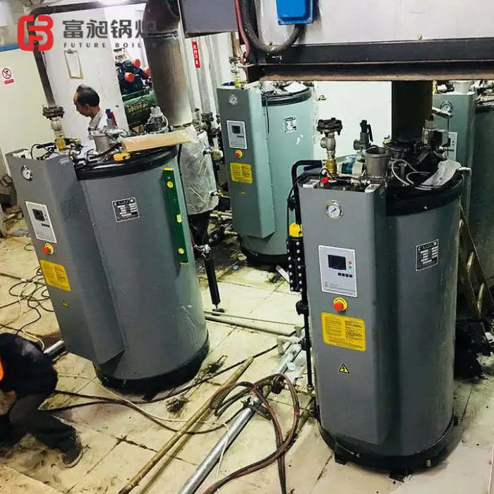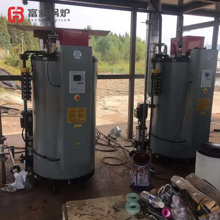 The boiler features a vertical water tube structure, which allows for a compact design.