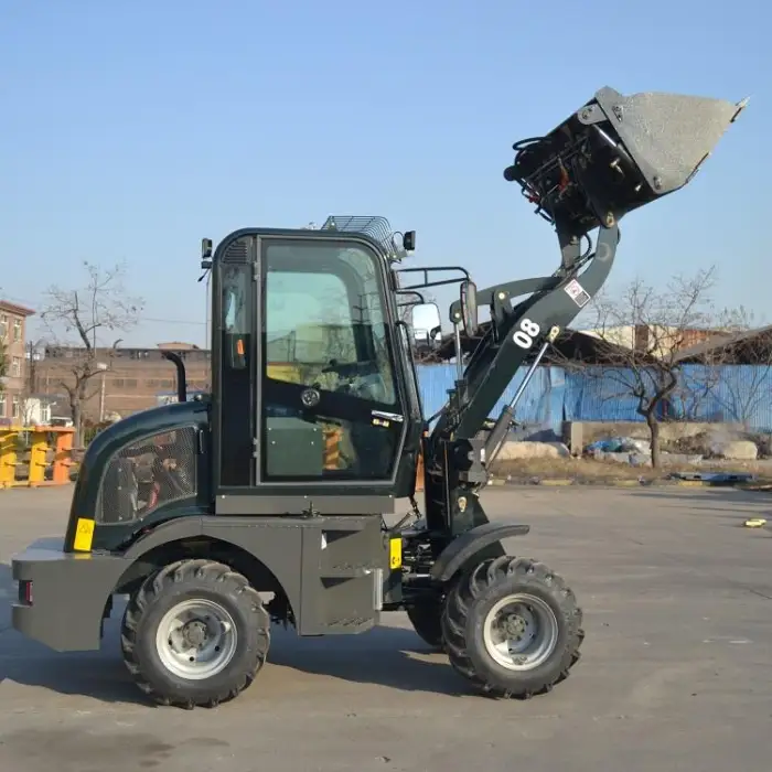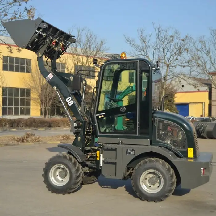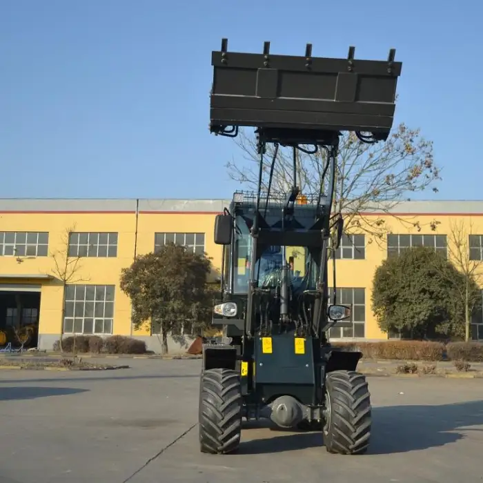 Key features include strong and durable construction, high bucket capacity, compact size for maneuverability, and an efficient engine.
