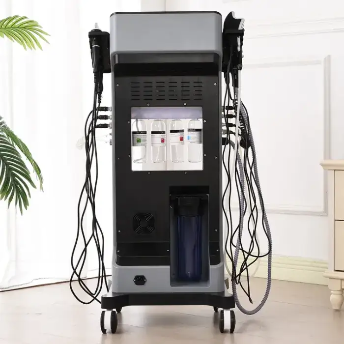 It is a portable facial treatment machine designed for professional skin treatments in beauty salons, offering multiple advanced technologies for deep cleaning, anti-aging, and skin rejuvenation.