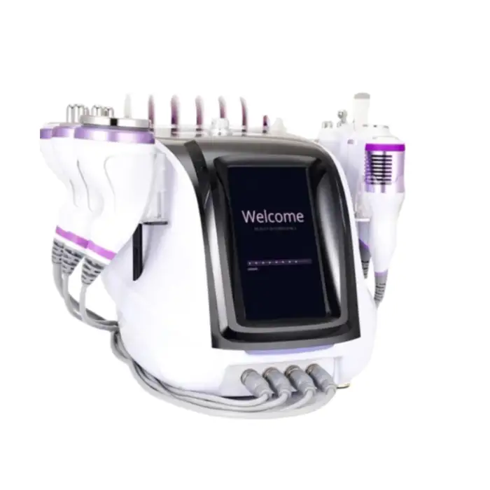 The machine utilizes RF (radiofrequency), cavitation, ultrasound, lipo, and vacuum technologies to address various beauty needs effectively.
