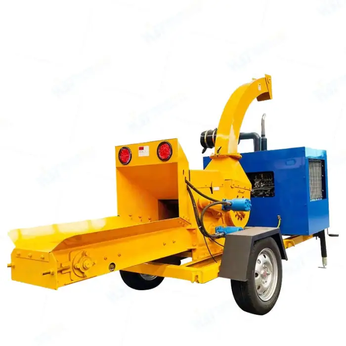 This wood chipper can process tree branches and wood chips, turning wood waste into valuable mulch or chips.