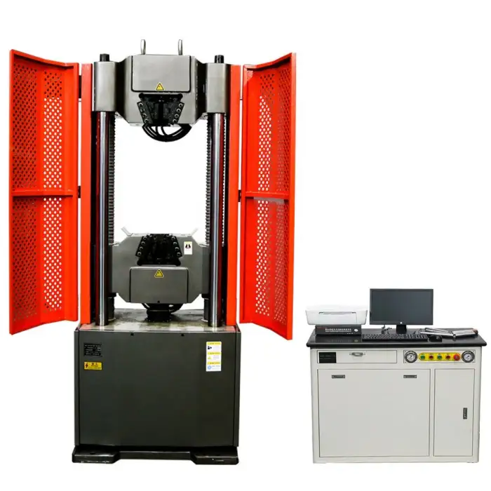 Key features include high accuracy, the ability to test various materials, easy operation with computer servo control, durable construction, and quick setup.
