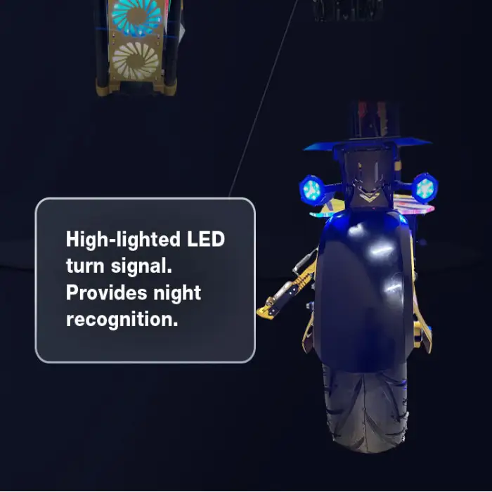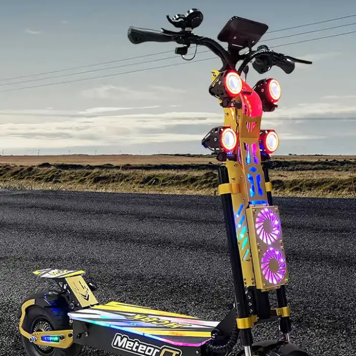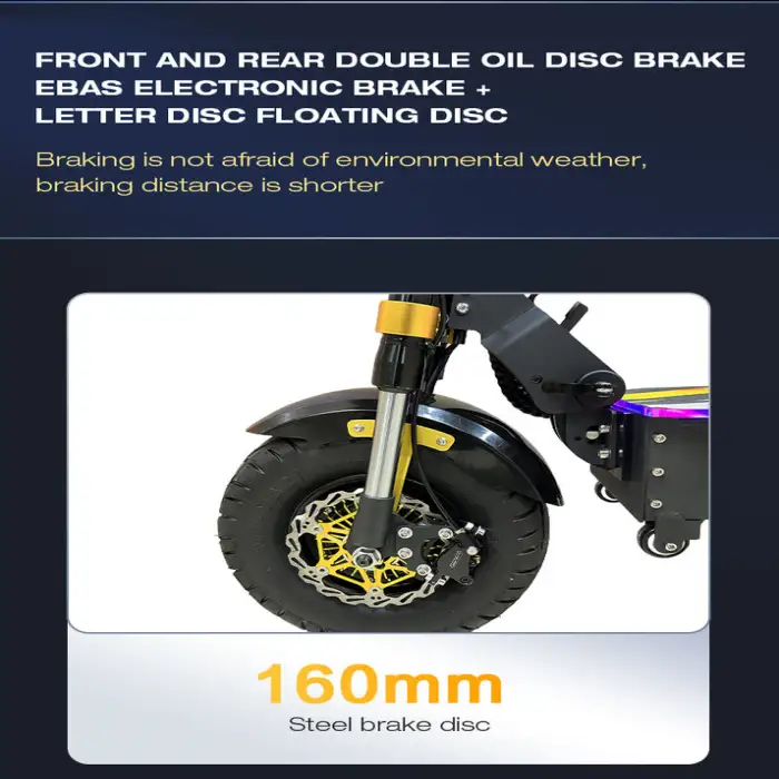 The scooter is powered by a 10000W brushless motor for high speed and efficiency.