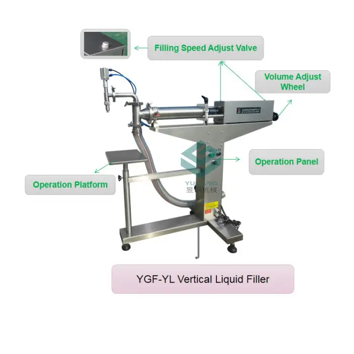 The filling machine is available in various sizes: 100ml, 500ml, 1000ml, 2000ml, and 5000ml, customizable according to your needs.