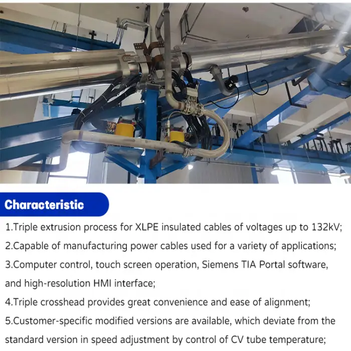 The main application of this equipment is the manufacturing of high-voltage cables, including those for power distribution, industrial applications, renewable energy projects, and infrastructure development for electrical grids.