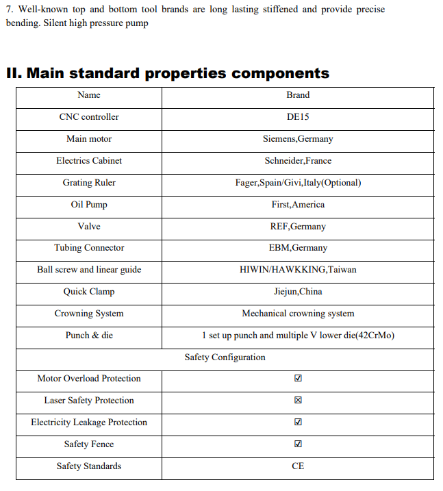 7. What safety features are included in the 110T/2500 CNC Press Brake Machine?