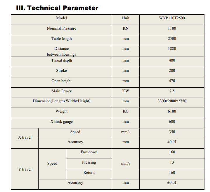 1. What is the maximum bending capacity of the 110T/2500 CNC Press Brake Machine?